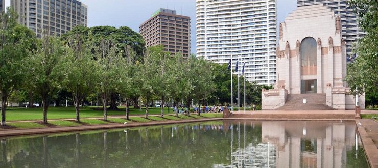 Ещё одной достопримечательностью является военный мемориал в честь солдат австралийского и новозеландского корпуса. Мемориал в стиле арт-деко отдаёт дань погибшим во время Первой мировой войны солдатам. Мемориал возвышается над Бассейном Воспоминаний, а под памятником представлена фотографическая выставка о событиях прошлых лет. Как и Гайд-парк в Лондоне, сиднейский парк можно отнести к списку лучших городских парков в мире.