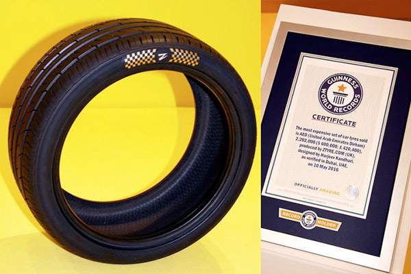 Уместно также, что эти роскошные шины были разработаны компанией в одном из самых дорогостоящих городов мира — Дубае. Тонкие небольшие шины на самом деле не выглядят роскошными, хотя и украшены золотом и алмазными камнями в 24 карата. Набор этих покрышек был недавно продан за 600 000 долларов — установив признанный стандарт Книги Рекордов Гинесса в качестве самых дорогих шин в мире.