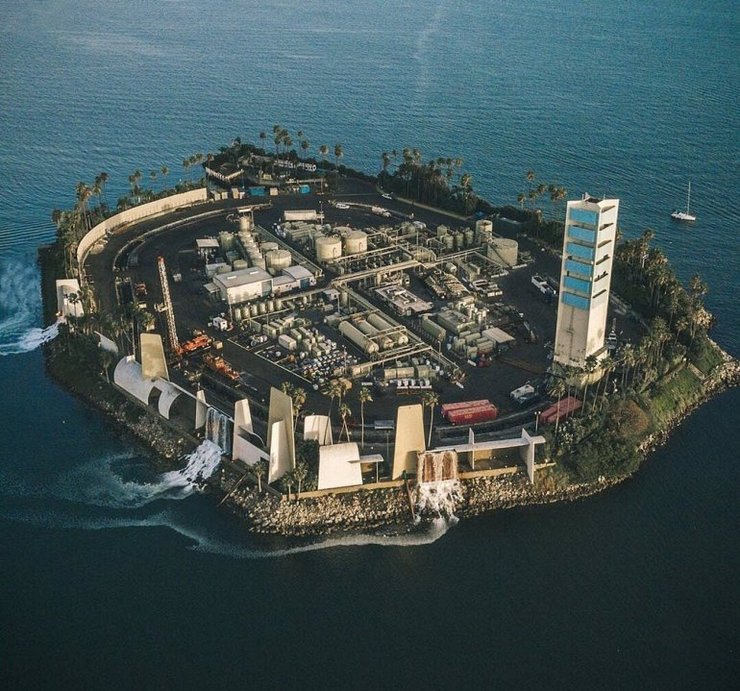 Вблизи побережья Лонг-Бич расположены четыре искусственных острова с возвышающимися среди пальм, кустарников и водопадов белыми зданиями. Все они ярко освещены красочными огнями в ночное время. Издалека кажется, будто острова застроены какими-то дорогостоящими квартирами, или курортами. Но на самом деле, это просто фасад, маскирующий масштабные операции по бурению нефтяных скважин в бухте.
