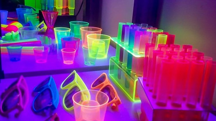 Если ваша идея вечеринки очень похожа на танцы и совсем не похожа на ужин, то для вас подойдет неоновая вечеринка. Это уникальная идея — создать ваш собственный клуб дома для ваших самых близких друзей. Все, что вам нужно сделать, это выключить обычные лампочки и заменит их неоновыми. Затем инструктируйте гостей одеть новогодние костюмы со светлыми цветами и приобрести неоновые браслеты, очки, чашки и соломки. Как только вечеринка начнется, в комнате будет стильное свечение, которое идеально подходит для танцев вплоть до утра нового года.